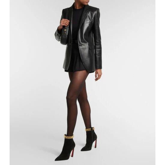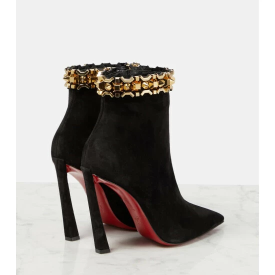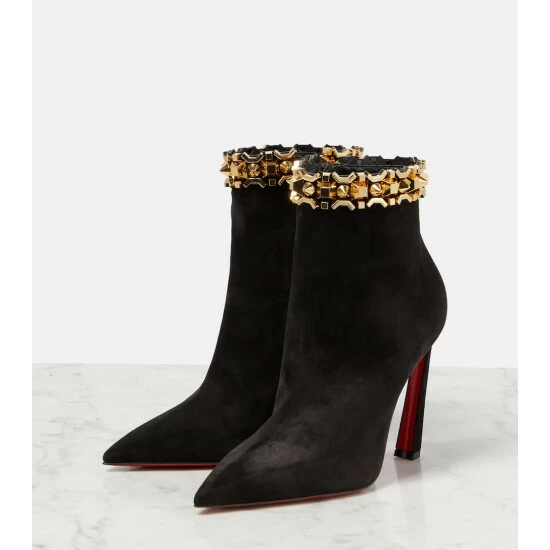 The Asteroispikes boots from Christian Louboutin are a striking design made from suede uppers with pointed toes. They’re defined by eye-catching hardware spike embellishment at the ankles.