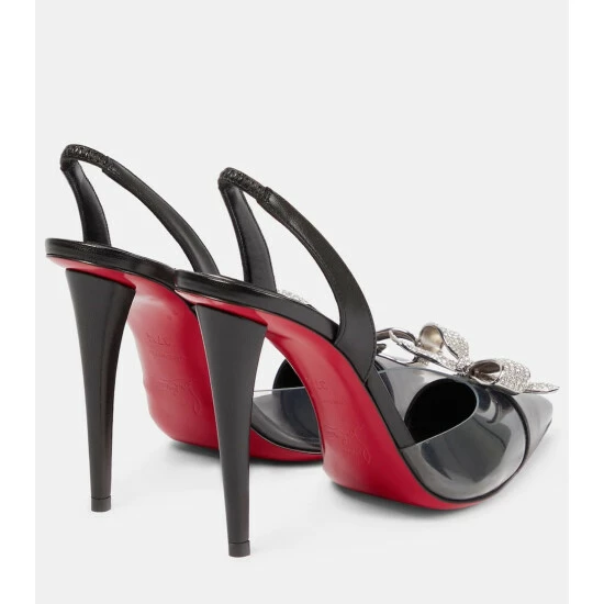 Christian Louboutin’s Astrinodo pumps are primed for dress-up evenings. Made from panels of black goatskin leather and clear PVC, they have crystal-encrusted bow embellishments and elasticated slingbacks for a secure, comfortable fit.