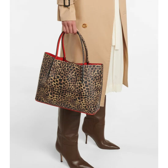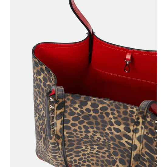 Christian Louboutin’s Cabarock Small tote strikes the perfect balance between forward-thinking design and the label’s signature glamour. Made from leopard-print leather, this design swings from spiked, slender top handles.