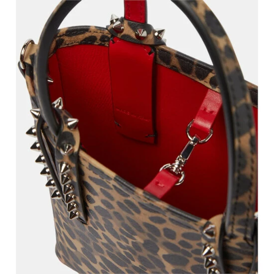 Increase the impact of any look with Christian Louboutin’s Cabata Mini tote in hand. Made in Italy from a leopard-printed calf leather, it features the label’s signature spikes and lipstick-red accents. The detachable shoulder strap allows for versatile carrying options.