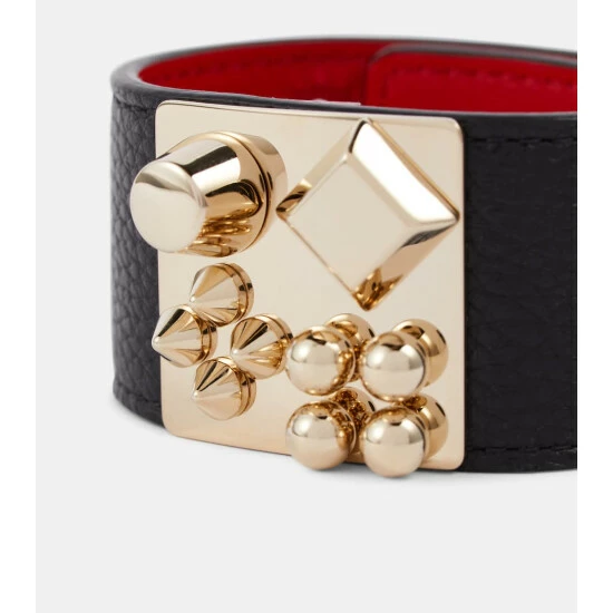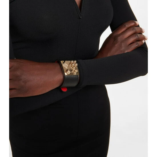 Finish your looks with statement jewelry like Christian Louboutin’s Carasky bracelet. Made from black leather, it’s embellished with studs in different shapes and sizes, and has an adjustable strap fastening