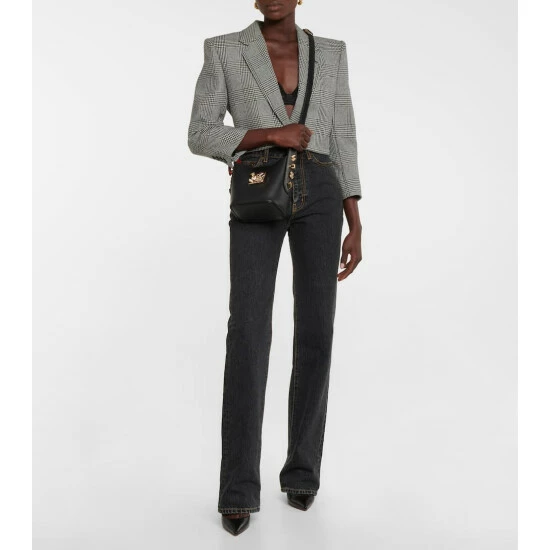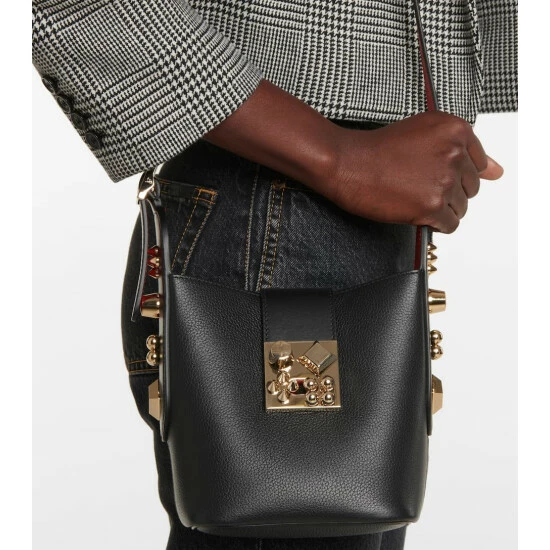 Christian Louboutin extends its Carasky line with this mini bucket bag from the new collection. Crafted from grained leather with a brand-signature red interior, this style is studded with golden hardware for a contemporary look.