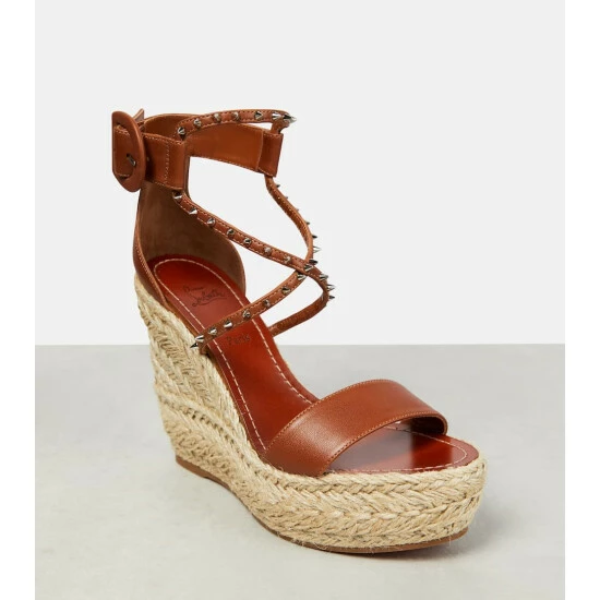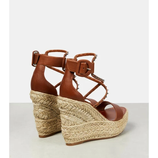 The Chocazeppa wedge espadrilles from Christian Louboutin have classic jute-trimming and a buckle ankle strap. The smooth leather uppers are embellished with stud detailing and rest on comfortable rubber soles.