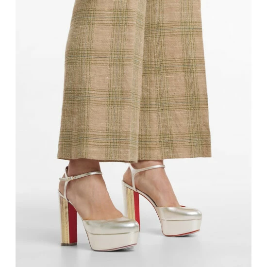 Take luxury with you every step of the way in Christian Louboutin’s Coluna pumps. Made from metallic leather, they have a label-signature, lipstick-red lining, and dramatic, galvanized 130mm heels, inspired by Greco-Roman columns.