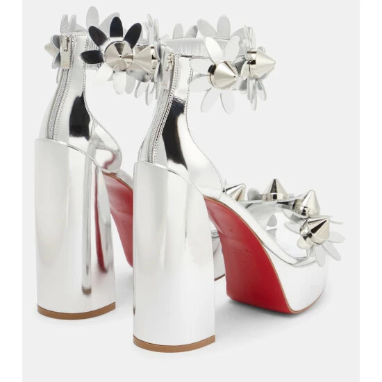 Dazzle in the Daisy Spikes platform sandals from Christian Louboutin. Made in Italy from metallic leather, these towering 130mm heels feature signature maxi spikes amidst delicately dotted daisies.