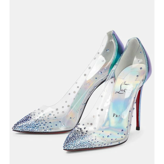 Adorned with crystal studs, Christian Louboutin’s Degrastrass pumps are the ultimate party shoes. This iridescent rendition – exclusive to Mytheresa – is made from clear PVC and metallic leather with pointed toes and 100mm stiletto heels.