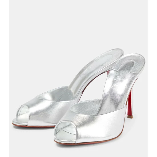 Set on signature red soles, the Dolly mules from Christian Louboutin are made in Italy from metallic silver goat leather and finished with stiletto heels for an elongating effect.