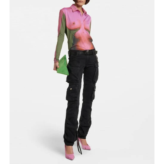 Christian Louboutin’s Duvette Spikes pumps are equally elegant and daring. In a pointed silhouette, they’re crafted from suede with patent leather panels, embellished with brand-signature spikes, and set on slender 85mm heels.