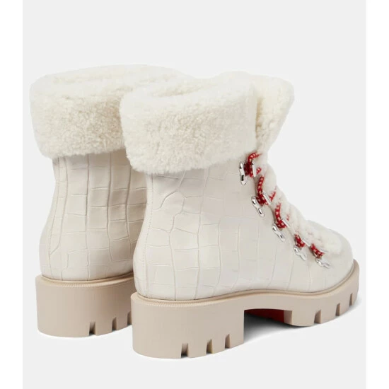 The Edelvizir boots from Christian Louboutin are an elevated take on trekking styles. Made from croc-effect leather, they have shearling trims and the label’s signature red accents.