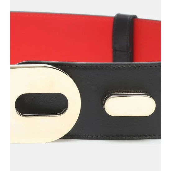 This black Elisa belt from Christian Louboutin has a wide silhouette that’s ideal for cinching relaxed blazers. Made in Italy from smooth calf leather with a red interior, it secures via the label’s signature twist-lock buckle which, on this occasion, in finished in pale gold-tone brass.