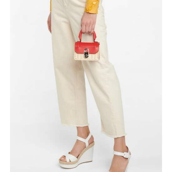 The Elisa tote from Christian Louboutin is here to reveal the latest mini-bag crave: miniature beach designs. Roomy enough to accommodate your dearest small essentials, it has a raffia body and a leather flap in (you guessed it) lipstick red.