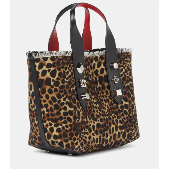 Christian Louboutin’s Frangibus tote is where glamour meets casual. The canvas composition and adjustable leather shoulder strap cater to a laid-back feel, while the silver studs and leopard print add some glitz.