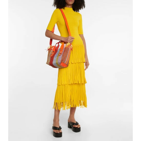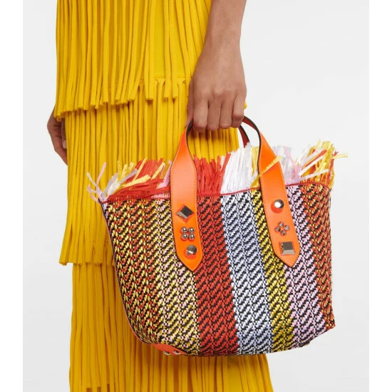 Opt for a bag that makes a statement with the Frangibus Small tote from Christian Louboutin. Made from raffia, the practical style features rounded leather top handles, a detachable shoulder strap, and a magnetic fastening to ensure essentials stay secure on the move.