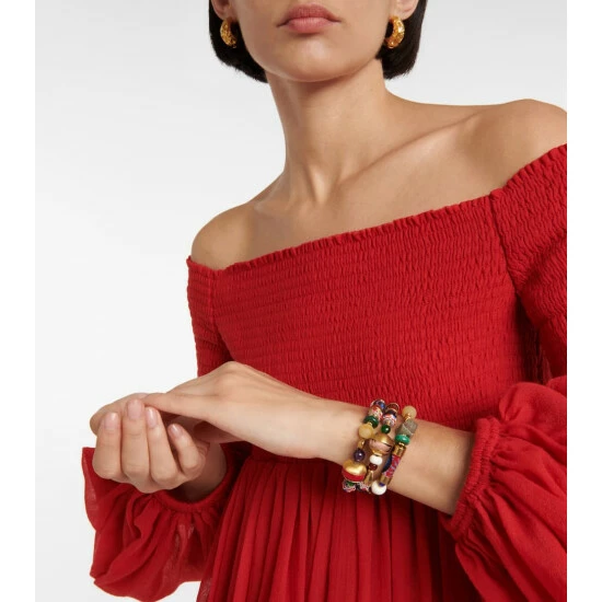 The Greekaba bracelet is designed with a selection of colorful beads and a golden leather clasp inspired by the spirit of Greece. It’s part of a special collaboration between Christian Louboutin and the Greek illustrator, Konstantin Kakanias.