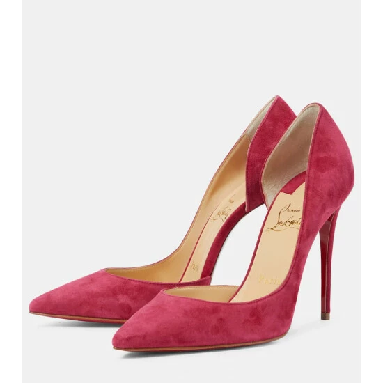 Christian Louboutin’s Iriza pumps are designed to enhance the foot’s arch. They come in a pointed-toe silhouette with 100mm stiletto heels for a seriously seductive portrait. They’re made in Italy from berry red suede, but it’s the label’s signature lipstick-hued soles that have the scene-stealing power.