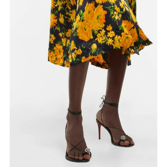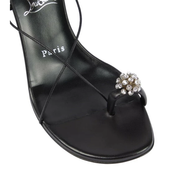 Leave it to Christian Louboutin to create summer’s perfect strappy sandals. The big toe has a personal strap, embellished with crystals, and thin cords of leather wrap around the foot and ankle.