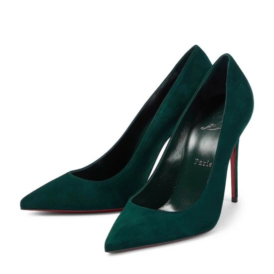 One of Christian Louboutin’s most iconic creations, the Kate pumps are designed to enhance the foot’s arch. They’re made from forest green suede, but it’s the label’s signature lipstick-hued soles that have the scene-stealing power.