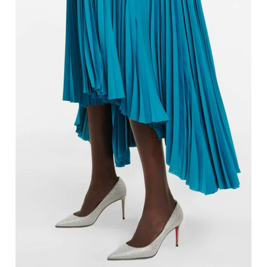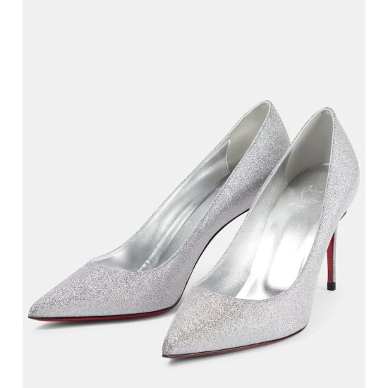 Set the tone for an evening out in Christian Louboutin’s Kate pumps. The pair is made from calf leather with a silver glitter finish and features elegantly pointed toes, heels that reach a height of 85 mm, and the maison’s signature red soles.