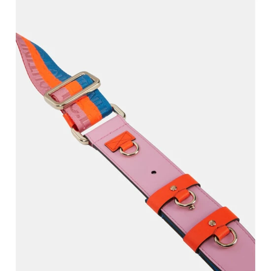 Attach this strap from Christian Louboutin to your favorite arm candy from the label’s extensive bag offering. The colorful buckled design is made from branded cotton jacquard with leather trims and hooks on each end.