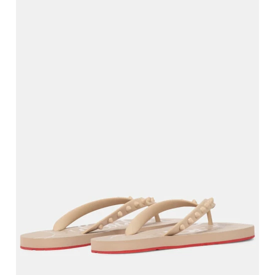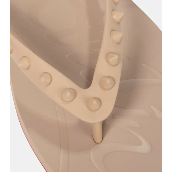 Thanks to the Loubi Flip thong sandals, you can now even bring Christian Louboutin’s scarlet soles to the beach. This lightweight beige rubber pair is embellished with tonal spike studs for a tough-luxe look. Consider them an essential packing piece.