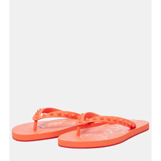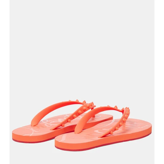 Thanks to the Loubi Flip thong sandals, you can now even bring Christian Louboutin’s scarlet soles to the beach. This orange rubber pair is embellished with tonal spike studs for a tough-luxe look.