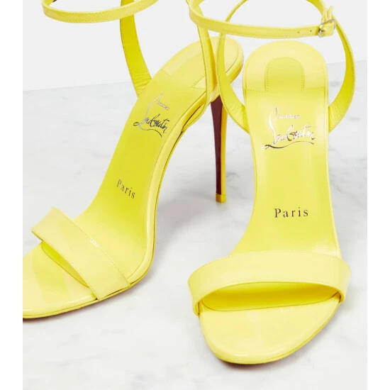 Christian Louboutin’s scintillating Loubigirl sandals are the perfect pair for special events. They’re made from glossy patent leather in yellow with slim ankle straps and 100mm stiletto heels.