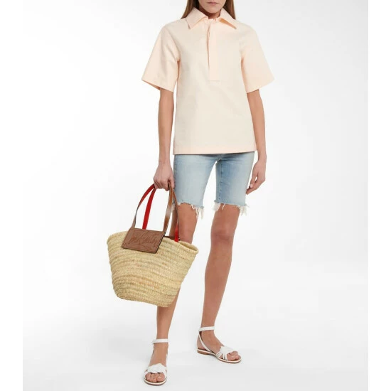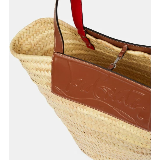 Christian Louboutin makes it mark on the summer-essential raffia tote by trimming the Loubishore Large style with an embossed leather logo panel. Note the red underside of the straps, which nods to the brand’s iconic lacquered soles.