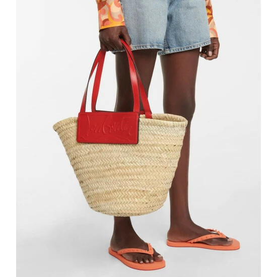 Everything designed by Christian Louboutin, including this Mytheresa-exclusive Loubishore tote, comes with a touch of red. The open-top design is made from woven raffia, and trimmed with calfskin leather featuring the house’s embossed logo. Bring it to the beach, the bar, and beyond this summer.