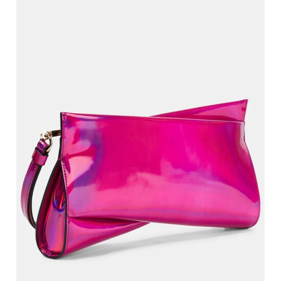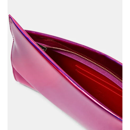 Make a glamorous statement with the Loubitwist clutch from Christian Louboutin. It is made from hot pink patent leather with signature red lining and two internal card slots.