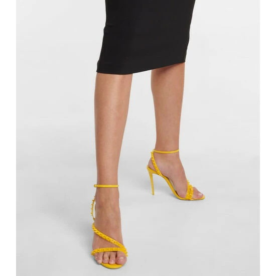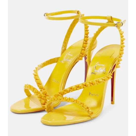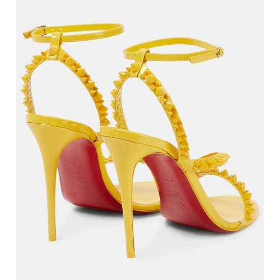 The Mytheresa-exclusive Mafaldina Spikes sandals from Christian Louboutin are embellished with tough-luxe Lou spikes. Drawing on the beauty of sunrise, they’re made from sun-kissed yellow patent leather with 100mm stiletto heels and iconic red-lacquered soles.