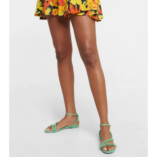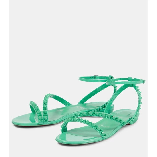 The Mafaldina Spikes sandals from Christian Louboutin x Mytheresa’s Exclusive Summer Capsule are embellished with tonal Lou spikes for iconic recognition. They’re made from pastel green patent leather with slightly stacked heels for all-day comfort.