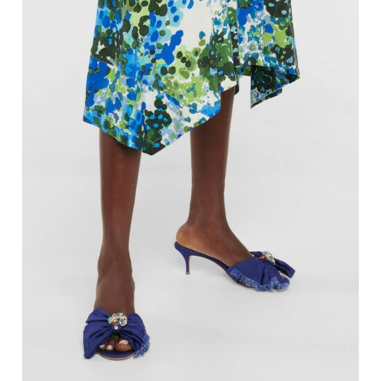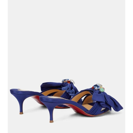 These blue Marie Anne sandals from Christian Louboutin are set on comfortable 55mm kitten heels. Made in Italy from cotton grosgrain, they have frayed straps with multicolored crystal embellishments.
