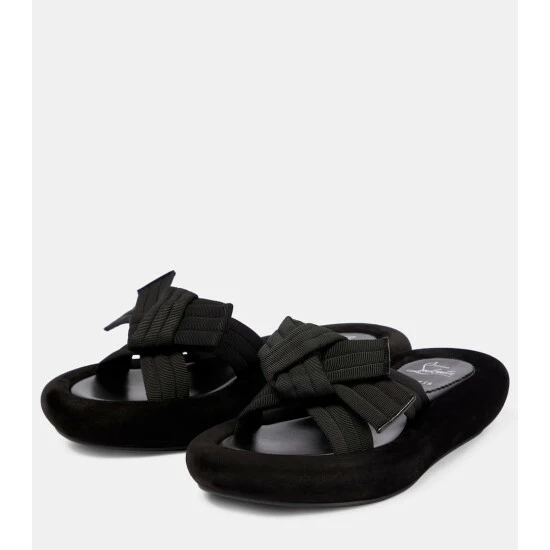 The Matriciasummer slides from Christian Louboutin feature knotted grosgrain straps inspired by traditional Japanese footwear. They’re set atop padded soles for a subtle lift.