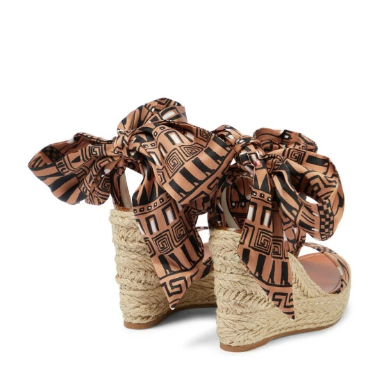 The Monica du Désert espadrille wedges from Christian Louboutin can be dressed up or down all summer long. With classic jute trims, the sky-high design is accented with silk self-ties at the ankles and leather soles.