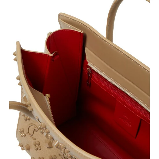 A signature house style, Christian Louboutin’s Paloma tote bag is reintroduced in a capacious new silhouette. Made in Italy, the calf leather design has logo embellishments, lipstick-red lining, and tubular handles.