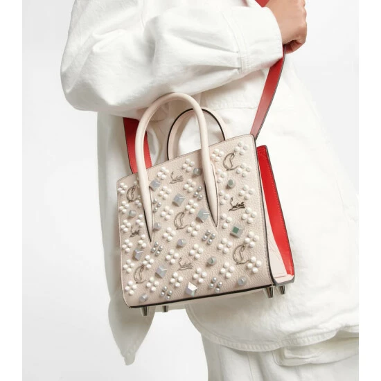 The Paloma Mini is a compact addition to Christian Louboutin’s iconic Paloma bag family. This dual-sided design balances the Loubinthesky spikes in the front with the muted elegance of the grained calf leather back.