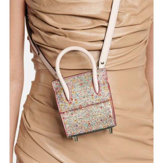 One of fashion’s favorite bags is the micro-crossbody, and we love Christian Louboutin’s Paloma Nano style. A testament to the brand’s penchant for glamour, it’s made in Italy from beige leather and features a coating of multicolored crystals – as well as the label’s signature lipstick-red lining. Silver-toned feet ensure the base of your bag will remain protected at all times.