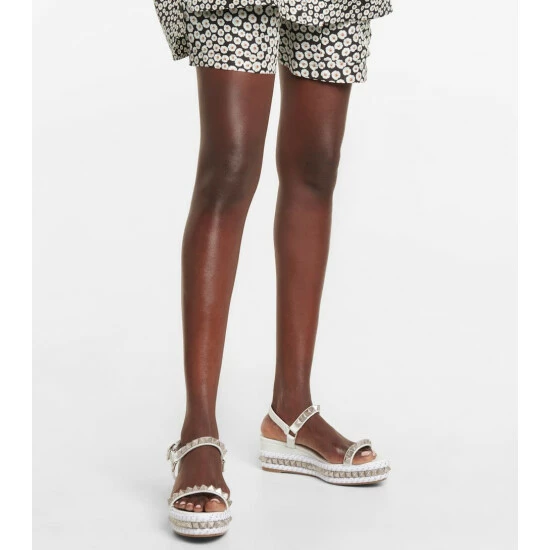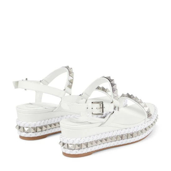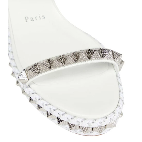 Bring an otherworldly touch to everyday looks with the Pyraclou platform sandals from Christian Louboutin. The open-toe design has white leather straps and the label’s signature studded embellishments.