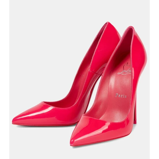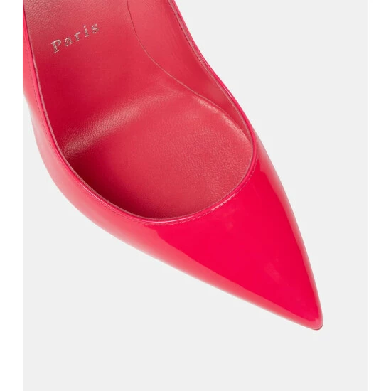 Christian Louboutin updates the iconic So Kate pumps in pink patent leather, exclusively for Mytheresa. A party-ready pair, they have pointed toes, 120mm stiletto heels, and the brand’s signature red soles.