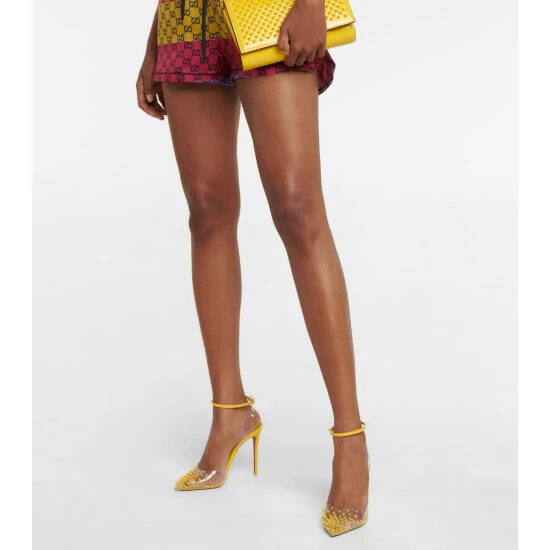 Inspired by the powerful beauty of sunrise, the Christian Louboutin Mytheresa-exclusive Spikoo pumps have razor-sharp profiles and tough-luxe Lou spikes. They’re made from PVC and yellow patent leather with 100mm stiletto heels and red-lacquered soles.