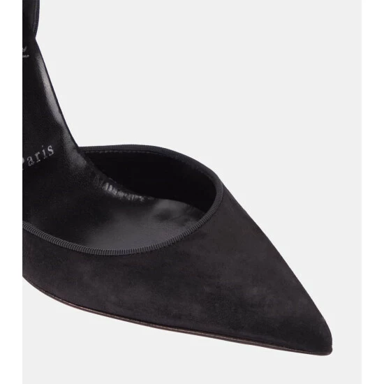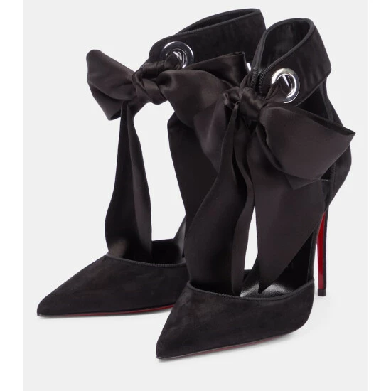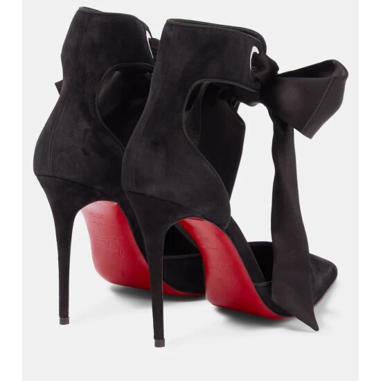 The Torrida pumps from Christian Louboutin balance a rich suede upper with silky satin self-tie detailing. The tonal design has a stiletto heel and a classic d’Orsay silhouette.