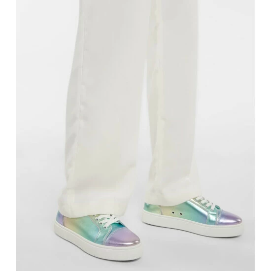 Christian Louboutin’s Vieirissima sneakers receive a bold update with metallic leather uppers. The multicolored pair is complemented by a minimalist silhouette and iconic red soles.